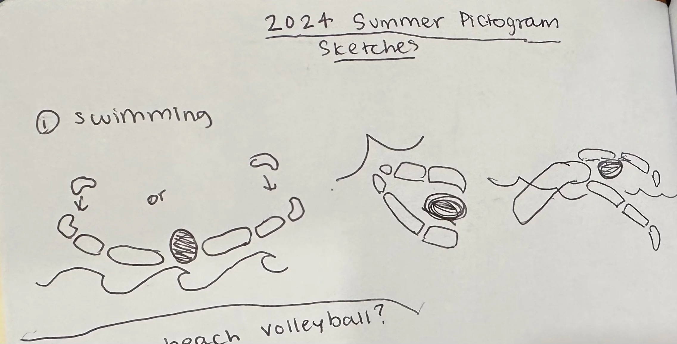 For the pictograms, I picked three summer Olympic sports for Paris. Surfing, swimming, and beach volleyball. These were shown with geometric human forms to complement my brand and add curves to the landscape.